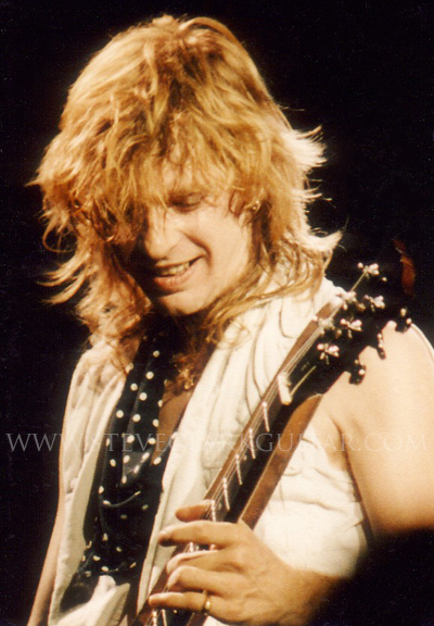 Steve: “We’ve obviously talked at length between ourselves about this problem and we’ve come to the conclusion that there is still room for lots of improvement on all levels. Basically we’re not going to repeat the ‘Pyromania’ writing formula. Phil’s contributing much more in the writing department, he didn’t get a chance before now for obvious reasons, and we’ve got some great ideas between us. Some of the new material in a lot of ways will be quite adventurous although some of it will be in the typical Leppard tradition.Right now the last worry we’ve got is to repeat the achievement of ‘Pyromania’. We’re more concerned with developing our potential than cloning our past.”