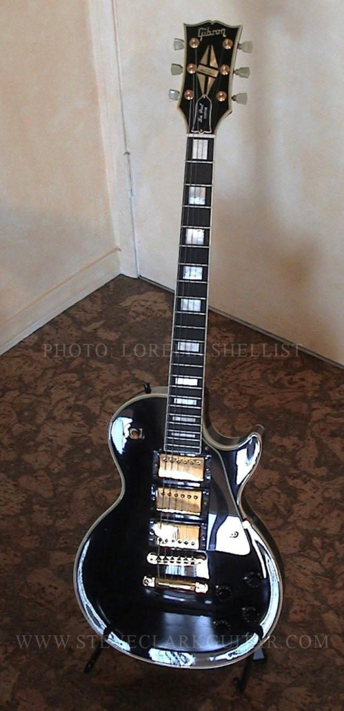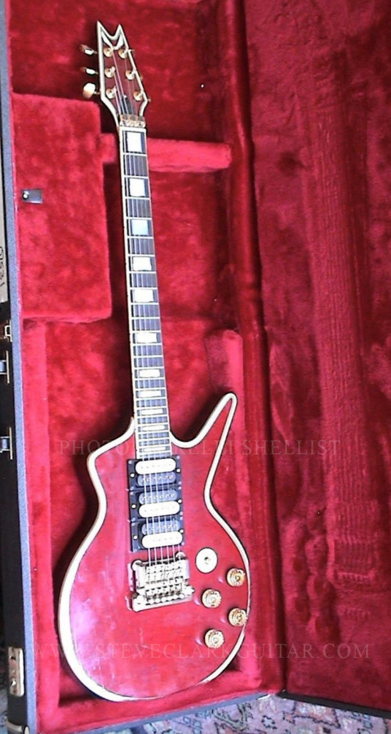 One of the ‘newest’ guitars that Steve owned would be a 1989 Les Paul, when he got one of the 35th Anniversary Les Paul Custom’s which Gibson issued that year to celebrate 35 years of the birth of the Les Paul – the first one being produced in 1954. This one, in typical Steve Clark style, would adorn the triple humbucker pickup configuration as well. From the photos and footage we have seen of this guitar, it appears to be stock.