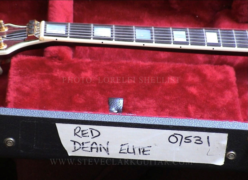 Another of Steve’s own guitars is the red Dean E’Lite (pronounced E-Light).