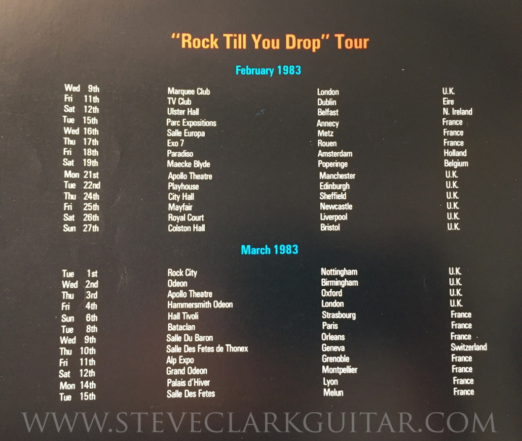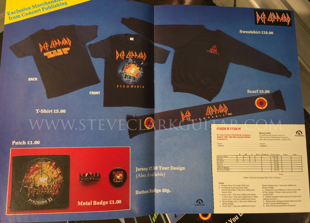 Here we have a look at the Steve Clark section of the original 1983 Pyromania “Rock Till We Drop” UK Tour programme