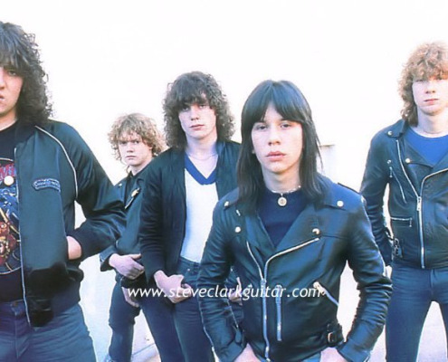 The band originated back in 1977 when Pete Willis (guitar), Tony Kenning (drums) and Rick Savage (bass) put a band together called Atomic Mass. Joe Elliott was hired as the lead singer. Steve Clark came in to make the band a twin guitar band after being invited to an audition by Pete Willis. The name Deaf Leopard was brought in by Joe and subsequently the spelling was altered to Def Leppard. From 1978 began a rollercoaster journey and out of it emerged one of British music’s finest and most successful bands, which was in large part due to the songwriting mastery and creativity of Steve Clark.